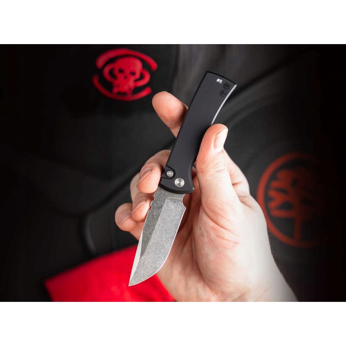 Ostrze typu drop-point, wykonane z najwyższej klasy stali proszkowej CPM MagnaCut (62-63 HRC), oferuje wyjątkową trwałość, odporność na korozję oraz doskonałe trzymanie krawędzi tnącej. Dekoracyjny ricasso i nacięcia na grzbiecie ostrza podkreślają nowoczesny charakter noża. Matowa czarna rękojeść z aluminium oraz czerwony backspacer dodają wyrazistości, a ukryte oczko na smycz zwiększa funkcjonalność.