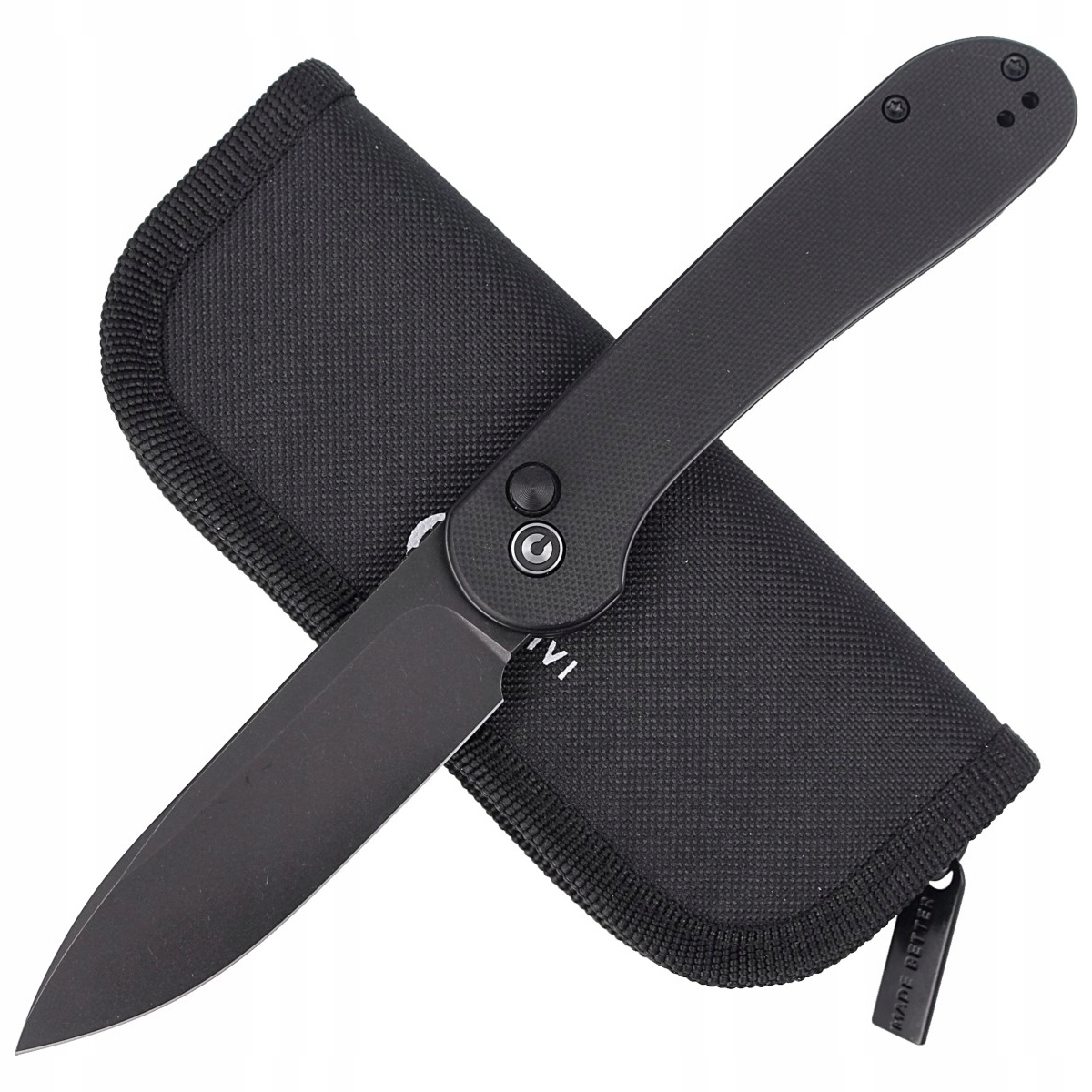 Futerał - nóż zapakowano w zapinany zamkiem nylonowy miękki pouch z logo marki służący do bezpiecznego przenoszenia i przechowywania foldera.