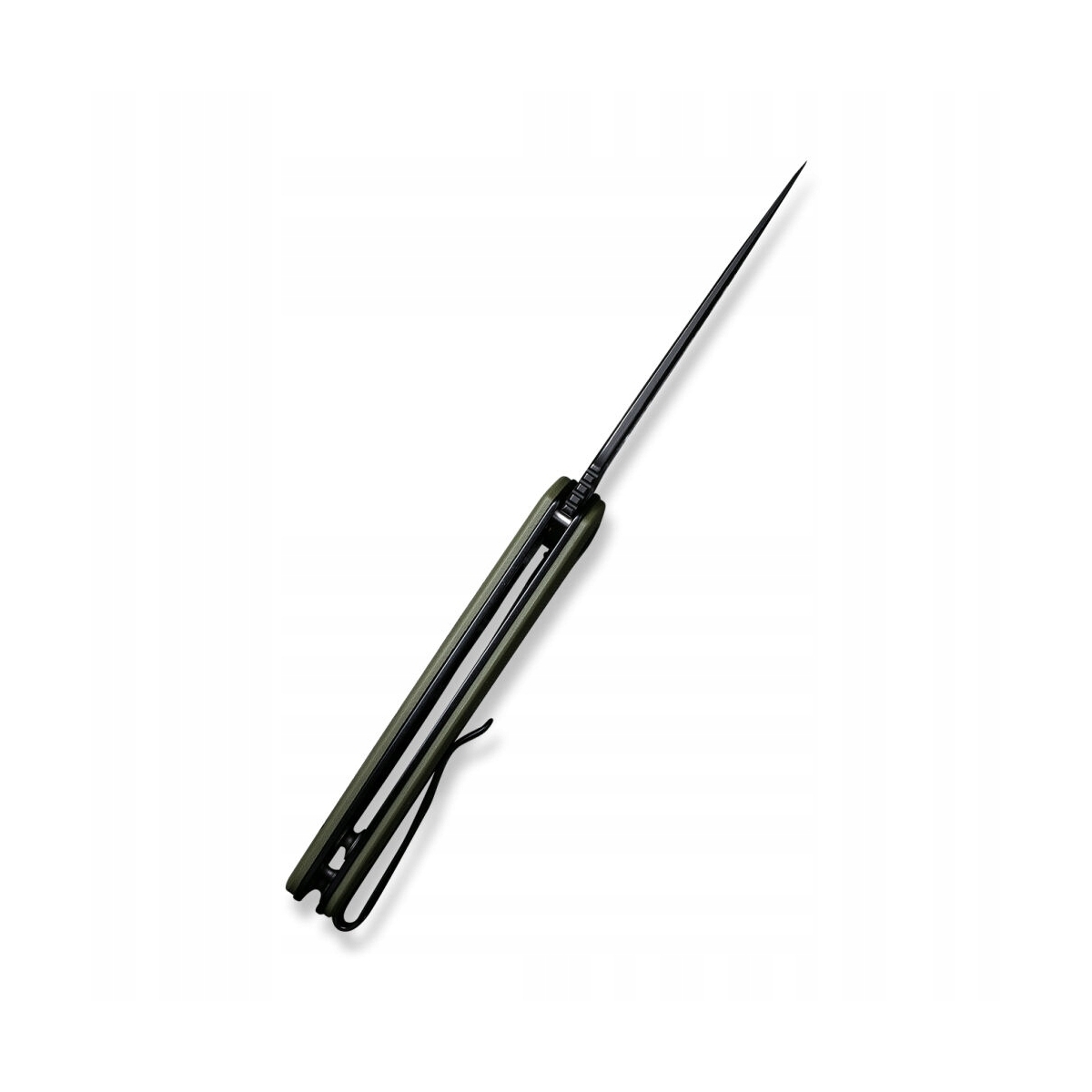 Okładziny zostały wykonane z zielonego tworzywa G-10 i przykręcone są do stalowych linersów. Dodatkowo mamy do dyspozycji klips, ułatwiający przenoszenie noża.