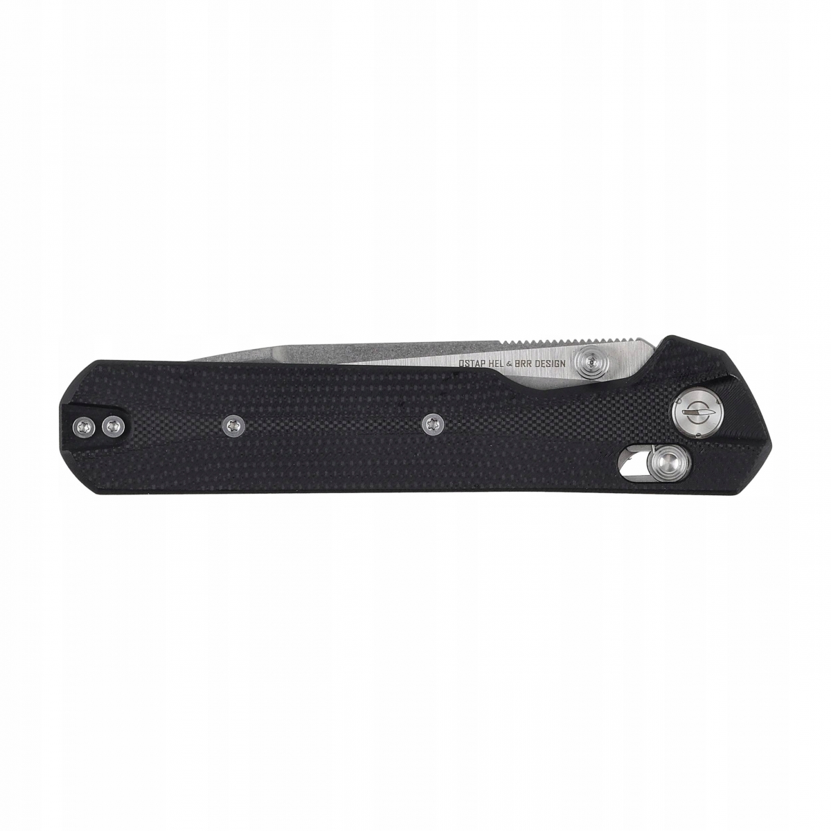 - Obustronny kołek - umożliwia sybkie i wygodne rozłożenie ostrza jedną ręką