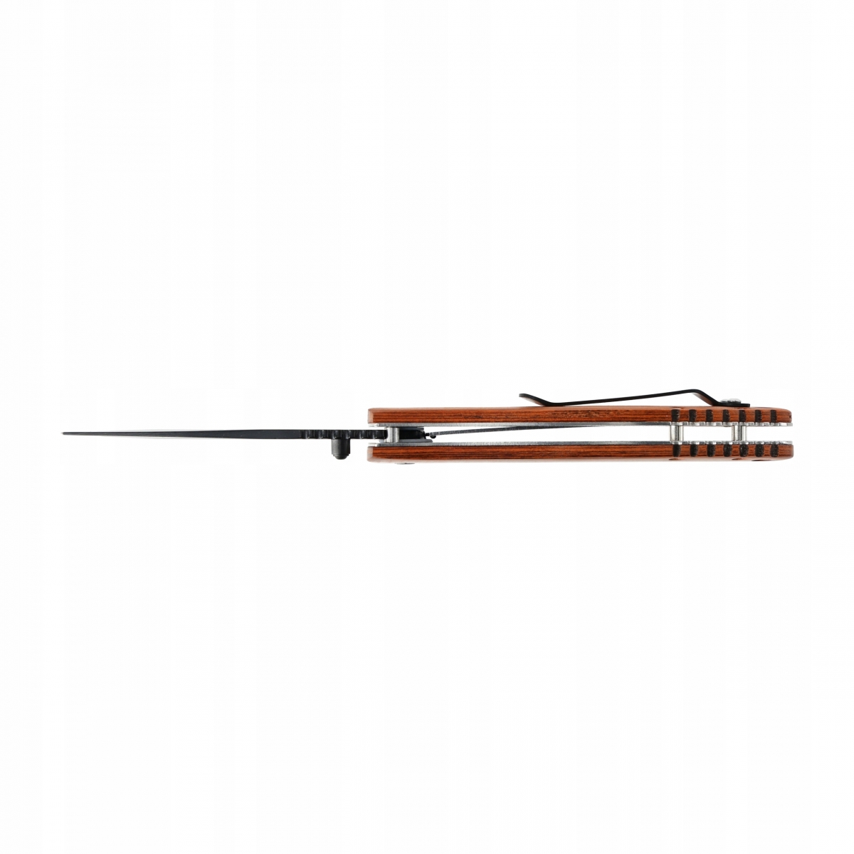 W nożu użyto okładzin z drewna pakkawood. Charakteryzują się one wysoką wytrzymałością oraz wyraźnymi, wyeksponowanymi słojami, nadając tym samym nożowi ekskluzywnego wyglądu. Odpowiednie wykonanie i konserwacja zapewnia długotrwałe piękno i funkcjonalność okładzin rękojeści.