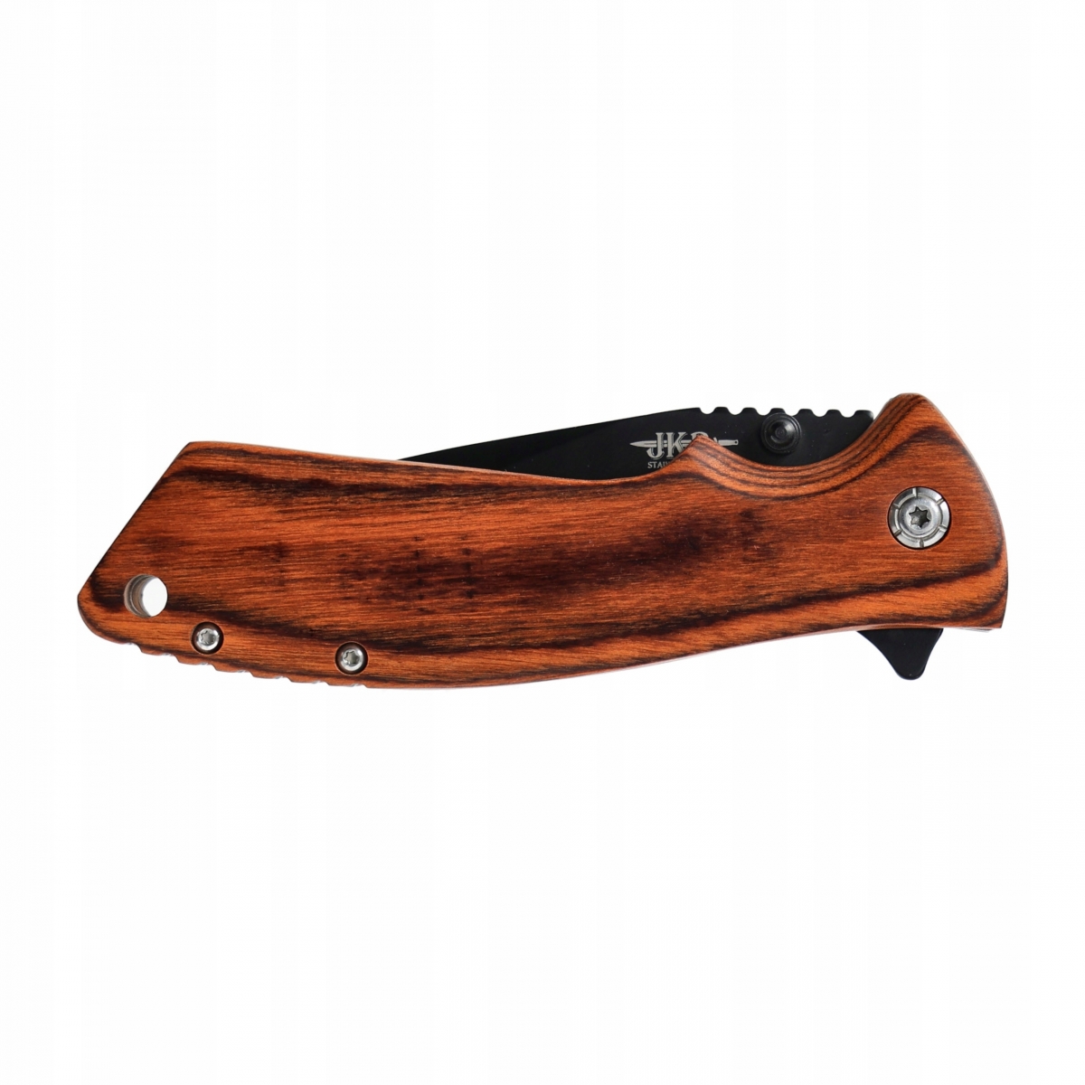Joker Navaja JKR 900 to składany nóż od renomowanej hiszpańskiej marki JOKER. Nóż JKR cechuje charakterystyczny, wydłużony kształt głowni o profilu Clip-Point z lekko uniesionym czubkiem. Wykonaną ją ze stali nierdzewnej 3cr13MOV. Okładziny rękojeści wykonane są z drewna pakkawood, w którym wyeksponowane słoje dodatkowo nadają charakteru nożowi.