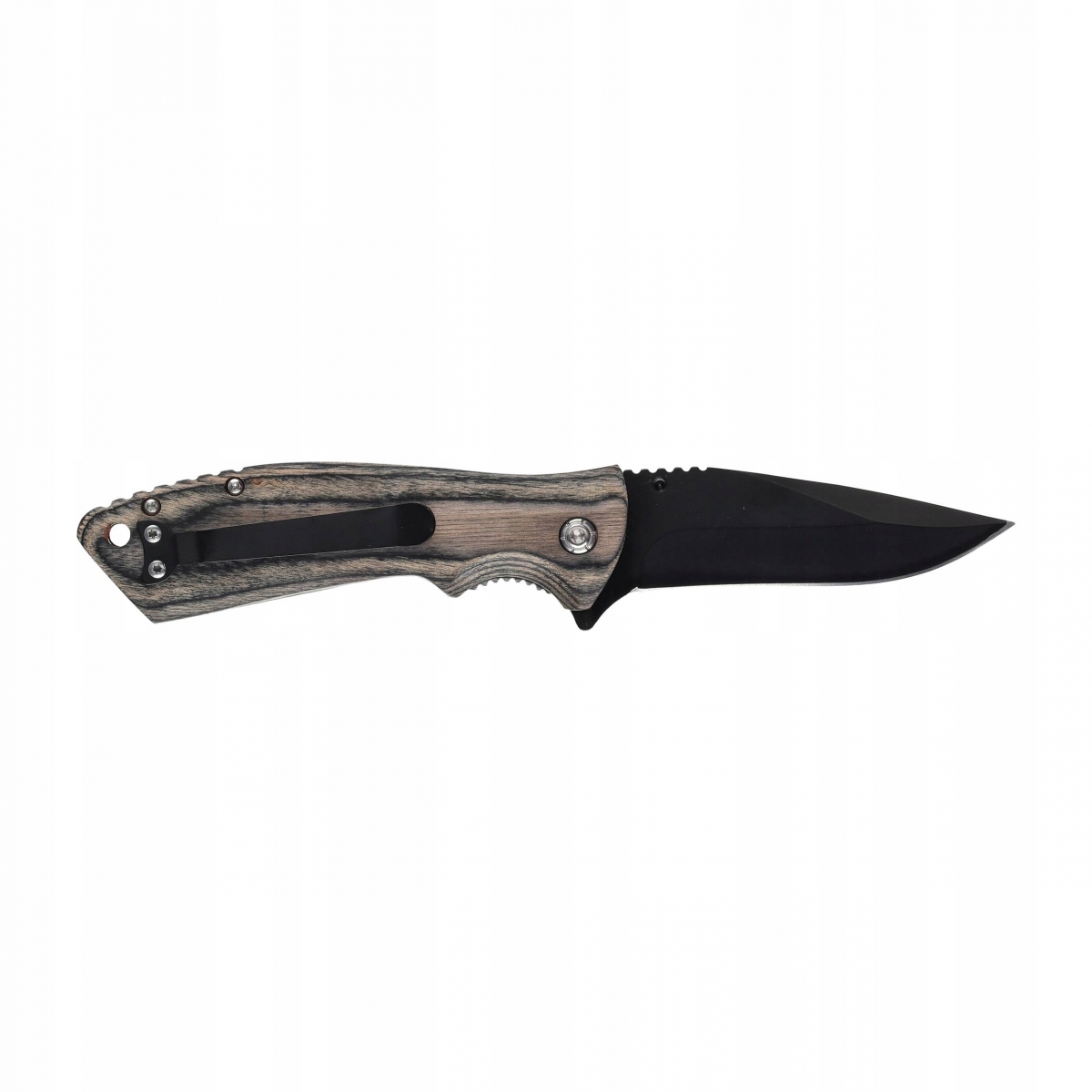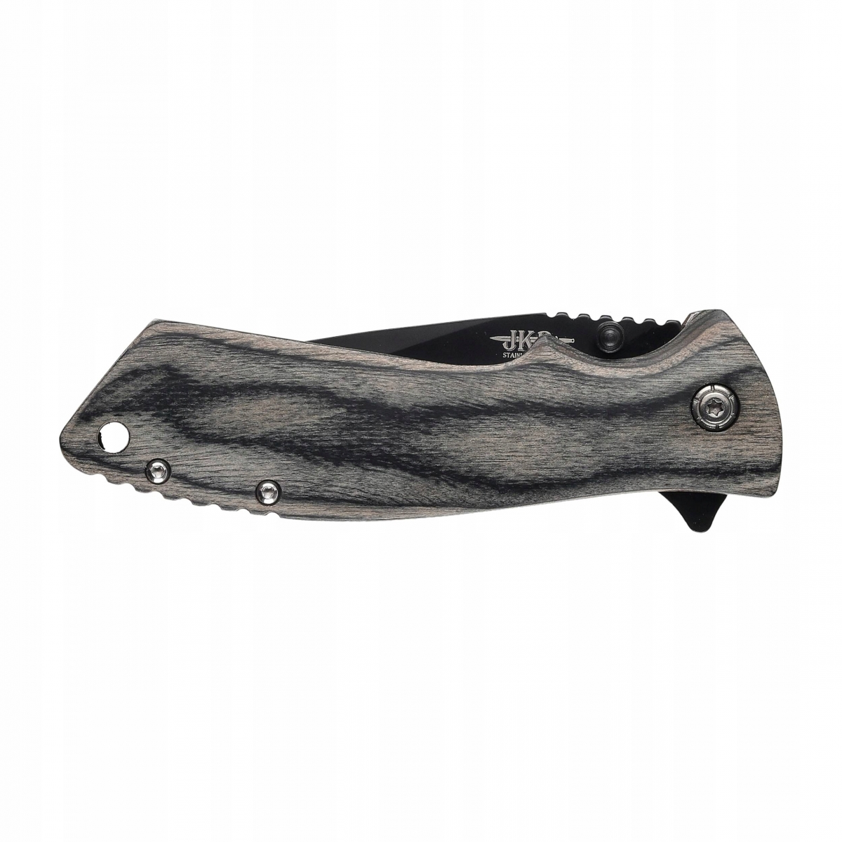 Joker Navaja JKR 899 to składany nóż od renomowanej hiszpańskiej marki JOKER. Nóż JKR cechuje charakterystyczny, wydłużony kształt głowni o profilu Clip-Point z lekko uniesionym czubkiem. Wykonaną ją ze stali nierdzewnej 3cr13mov. Okładziny rękojeści wykonane są z drewna pakkawood, w którym wyeksponowane słoje dodatkowo nadają charakteru nożowi.