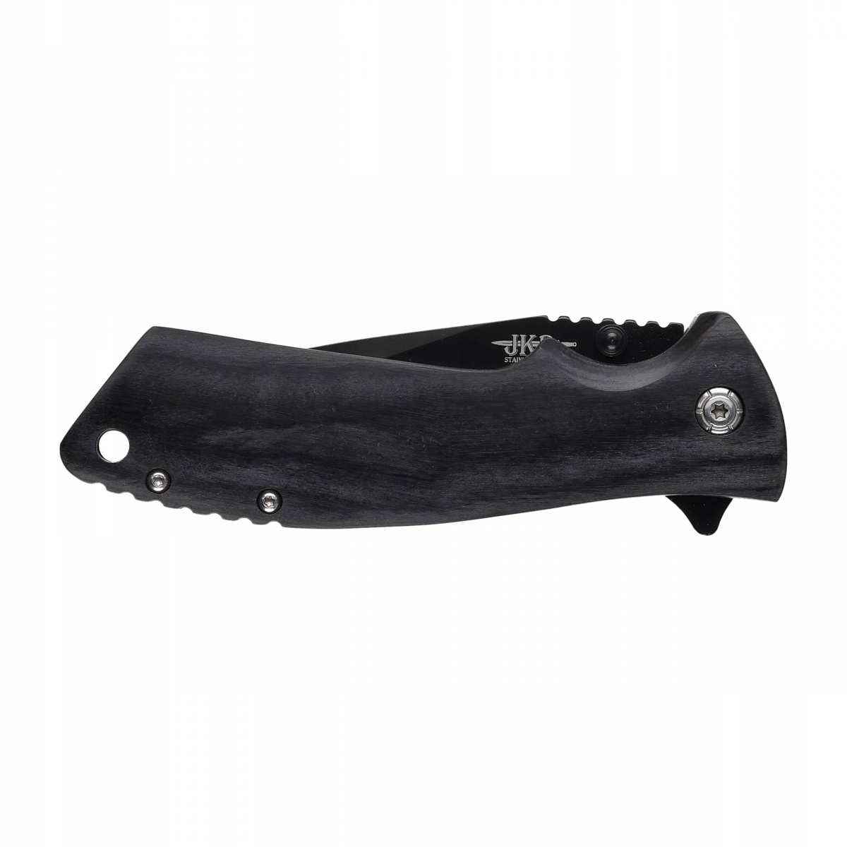 Joker Navaja JKR 898 to składany nóż od renomowanej hiszpańskiej marki JOKER. Nóż JKR cechuje charakterystyczny, wydłużony kształt głowni o profilu Clip-Point z lekko uniesionym czubkiem. Wykonaną ją ze stali nierdzewnej i nadano elegancki wygląd. Okładziny rękojeści z drewna palisandrowego dodatkowo nadają charakteru nożowi.