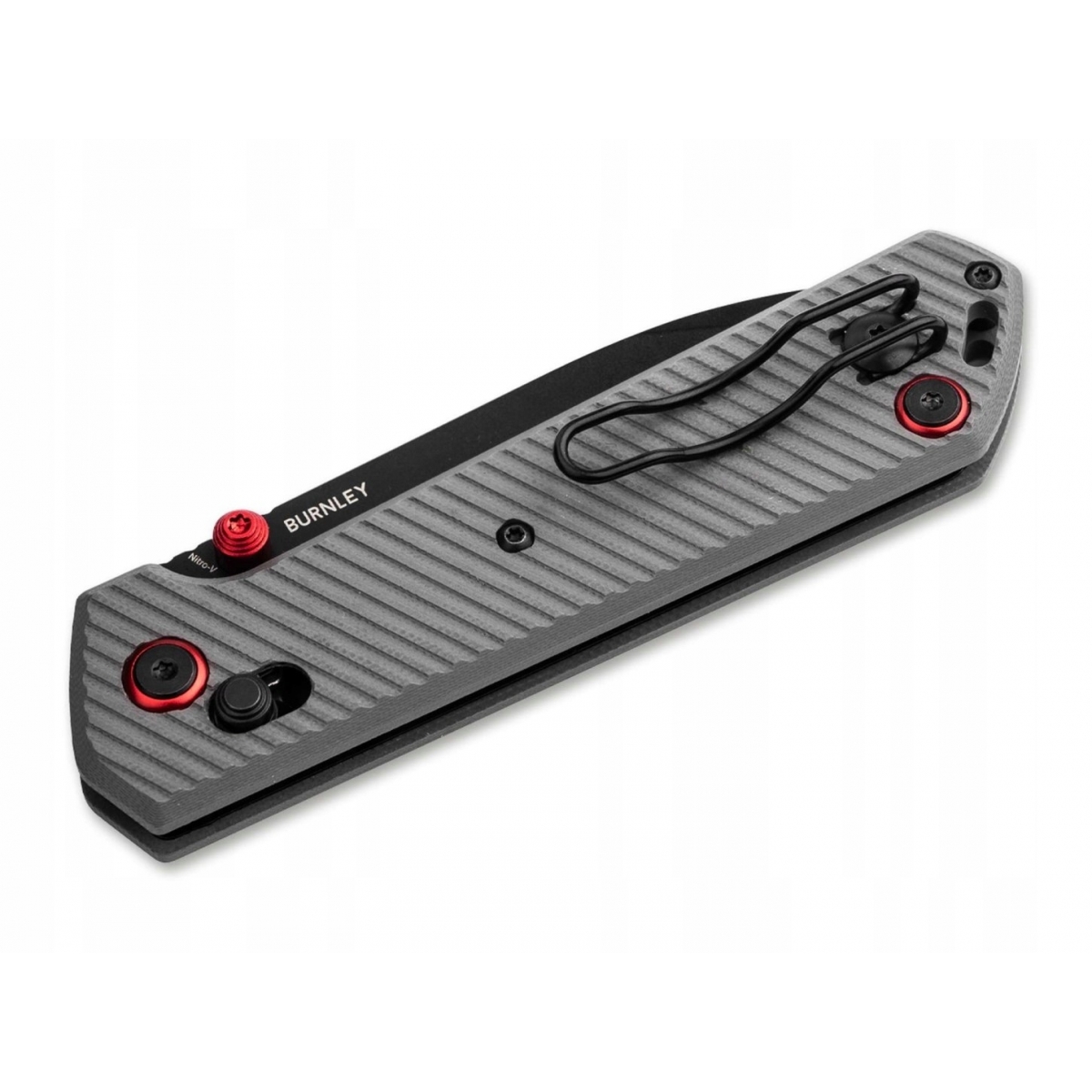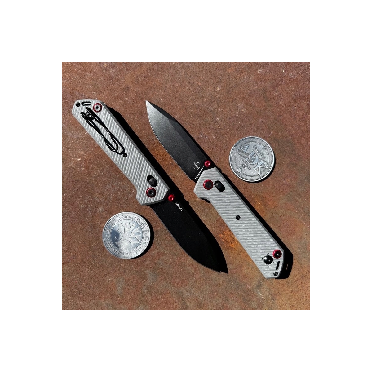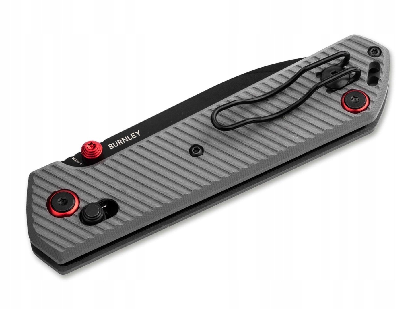 Czerwone anodowane elementy, takie jak dwustronny kołek na kciuk i pierścienie wokół śruby obrotowej ostrza i dużej śruby uchwytu, nadają Kihonowi delikatny wygląd.