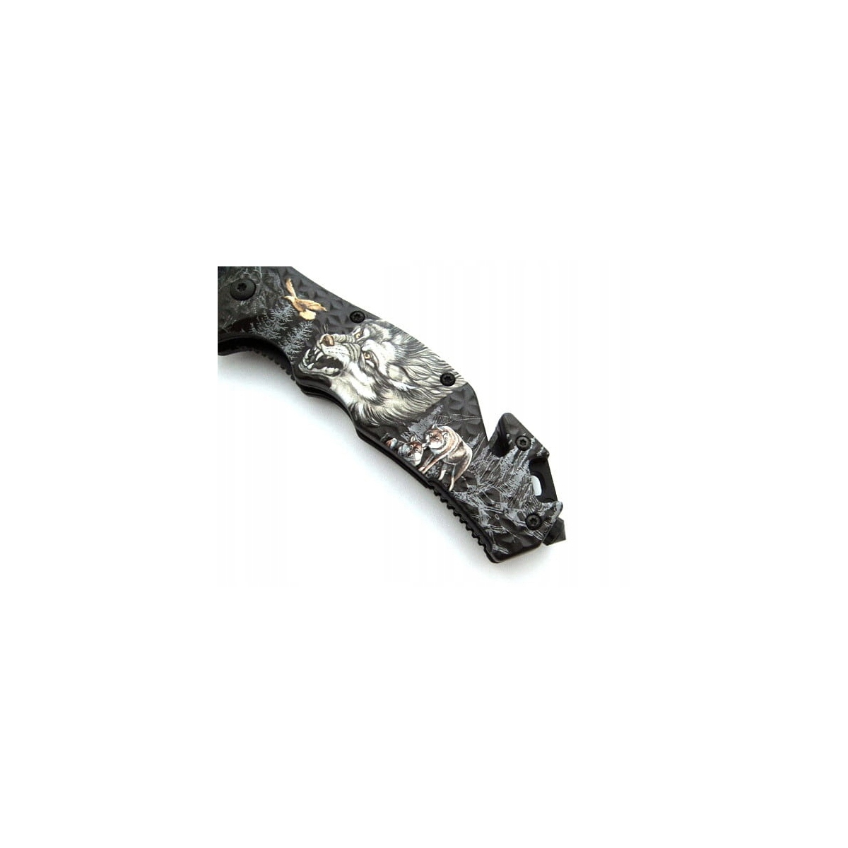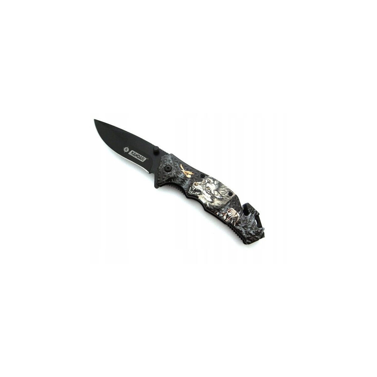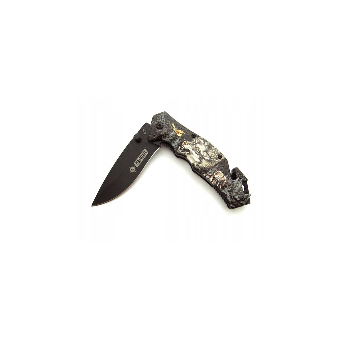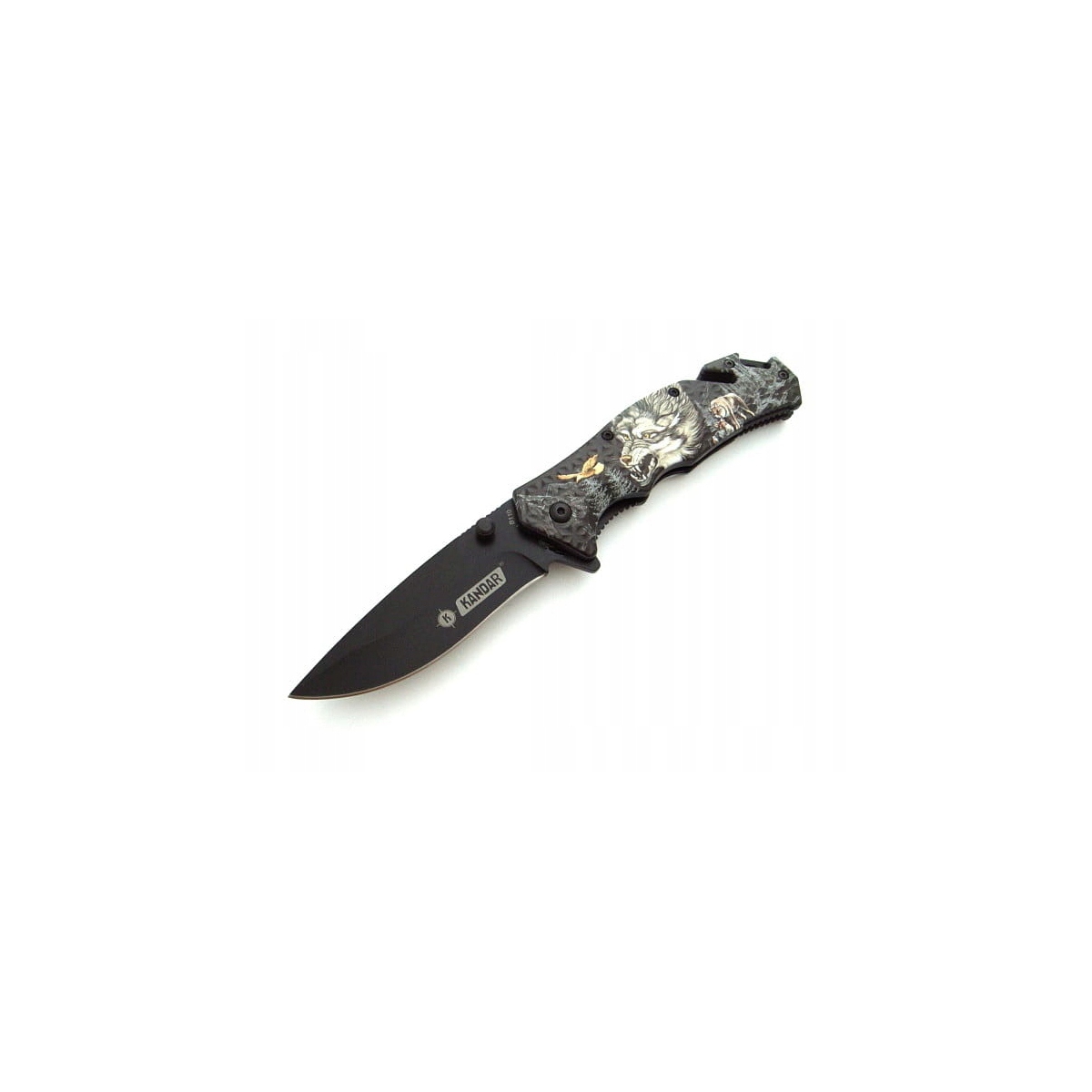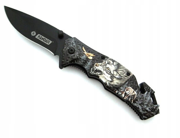 Nóż składany KANDAR N-353D posiada ostrze o długości 90mm wykonane ze stali nierdzewnej. Rękojeść posiada okładziny zdobione motywem wilka.