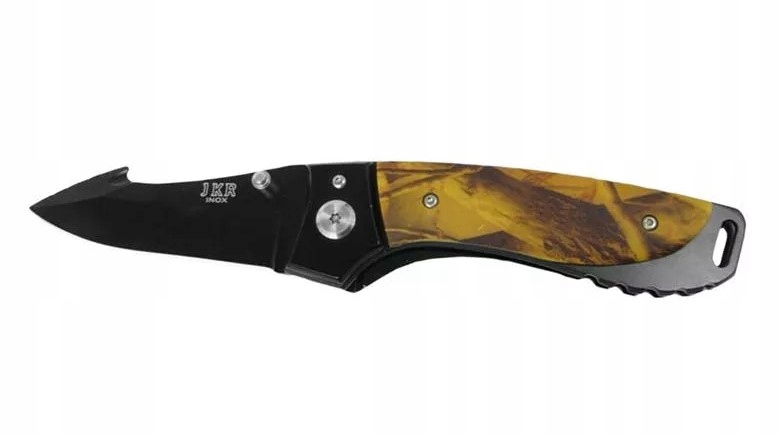 Nóż myśliwski składany JOKER JKR206- wysokiej jakości nóż hiszpańskiej firmy Joker. Rękojeść posiada gumowane okładziny w kamuflażu leśnym.