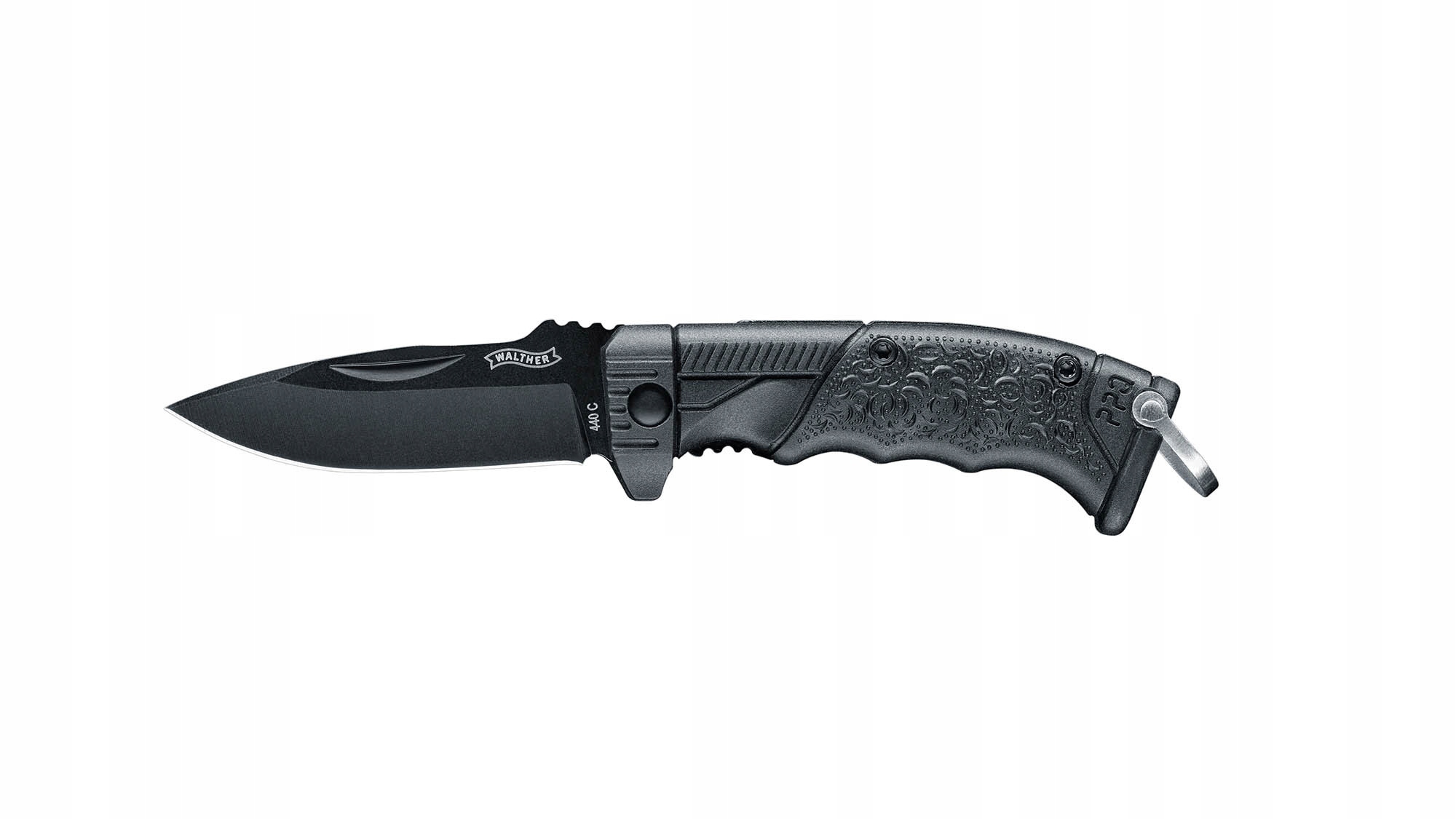 Nóż Walther PPQ - to składany nóż taktyczny, z głownią ze stali nierdzewnej 440, którego design nawiązuje do stylistyki i wzornictwa pistoletu Walther PPQ.