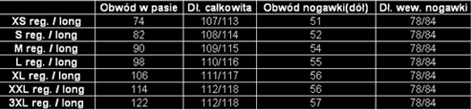 Tabela rozmiarów:
