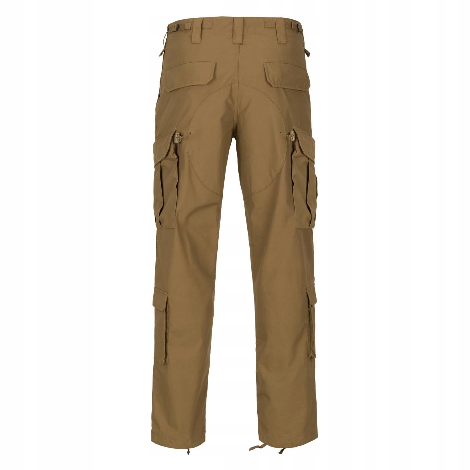 Dwie udowe kieszenie posiadają elastyczny sciągacz dzięki któremu możemy wykorzystać je jako torby zrzutowe na magazynki lub po prostu wykorzystać sciągacz jako zabezpieczenie przed wypoadaniem przedmiotów z kieszeni. Nieduże kieszenie powyżej kieszeni udowych idealnie nadają się do przenoszenia latarki lub składanego noża. Kieszenie na łydkach idealnie nadają się do przenoszenia dodatkowych magazynków NATO-STANAG lub opatrunków osobistych zapewniając nam łatwy dostęp do nich w pozycji siedzącej, klęczącej lub w pojezdzie.