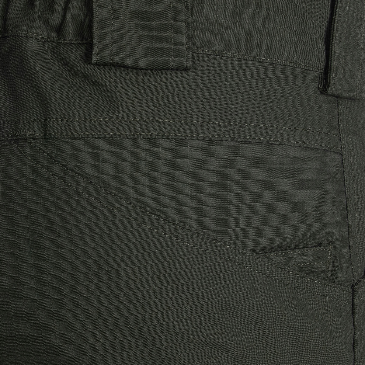 - Dwie wąskie kieszenie wkomponowane w kieszenie tylne, na magazynki lub pałkę teleskopową.