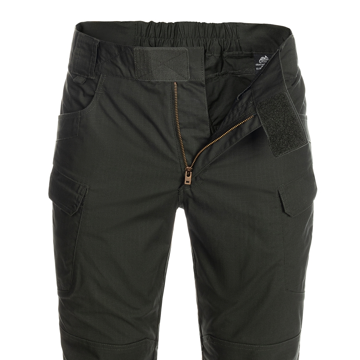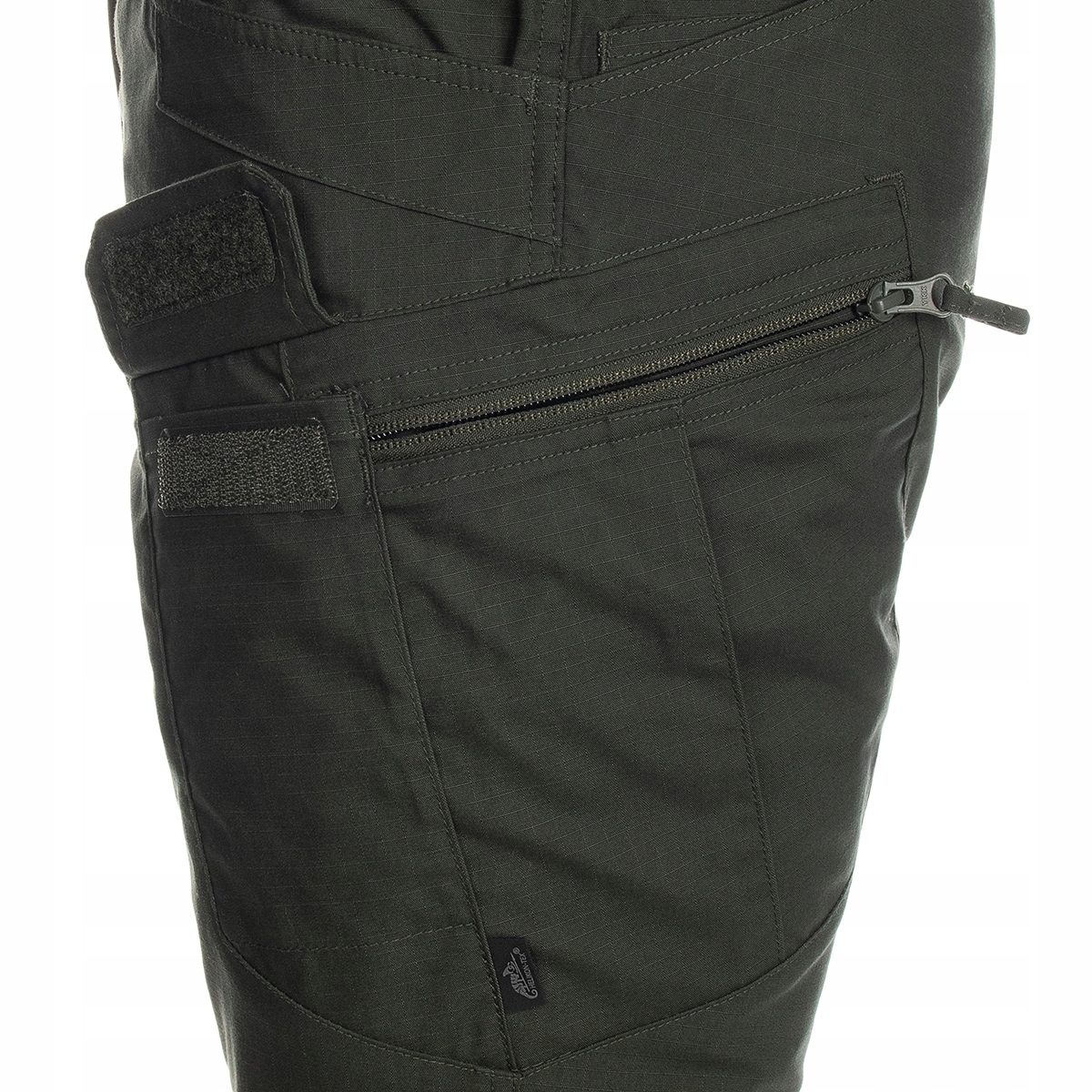 - Dwie kieszenie udowe zapinane zamkiem YKK® (odwrotnym), mogące służyć do przenoszenia dokumentów i drobnych przedmiotów osobistych