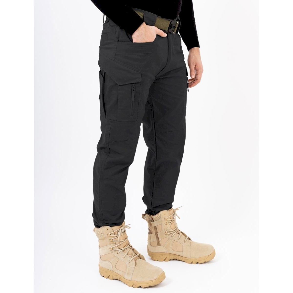 Zastosowany krój i ułożenie kieszeni sprawiają, że spodnie ELITE zachowują cywilny wygląd, nie zdradzając tożsamości użytkownika. Konstrukcja ELITE umożliwia przenoszenie istotnego oporządzenia oraz współpracuje z anatomią ruchu człowieka. Zestaw kieszeni pozwala na ułożenie ekwipunku blisko środka ciężkości – wokół bioder i pasa użytkownika. Zastosowany, elastyczny materiał wpływa na łatwość i szybkość poruszania się w warunkach taktycznych.
