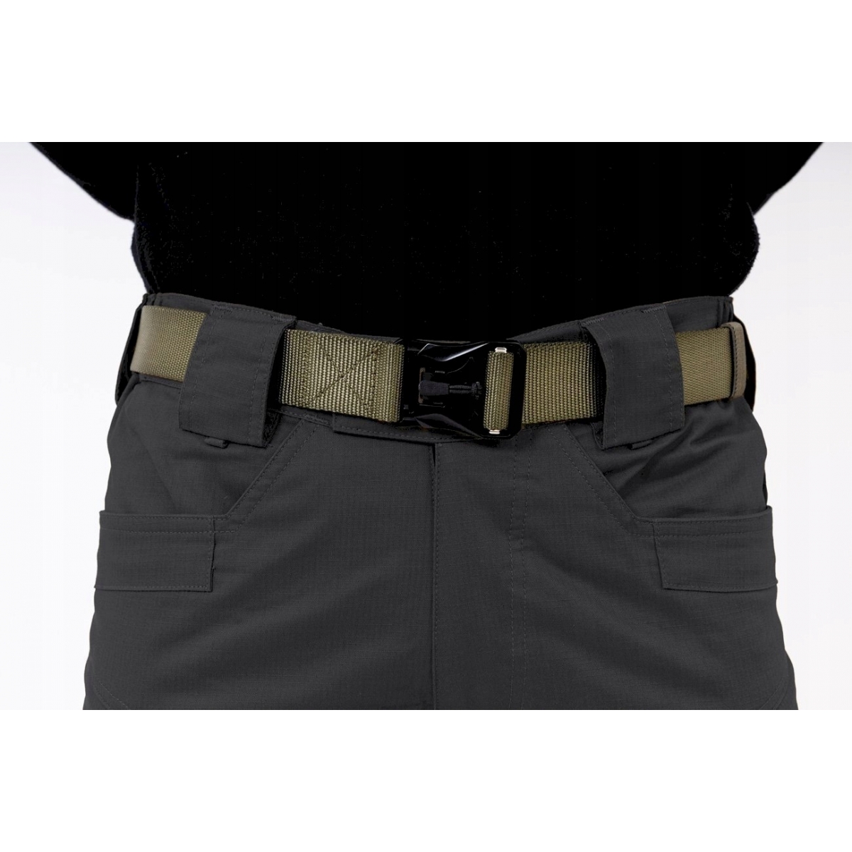 - Mocne, szerokie szlufki na pasek lub pas bojowy.