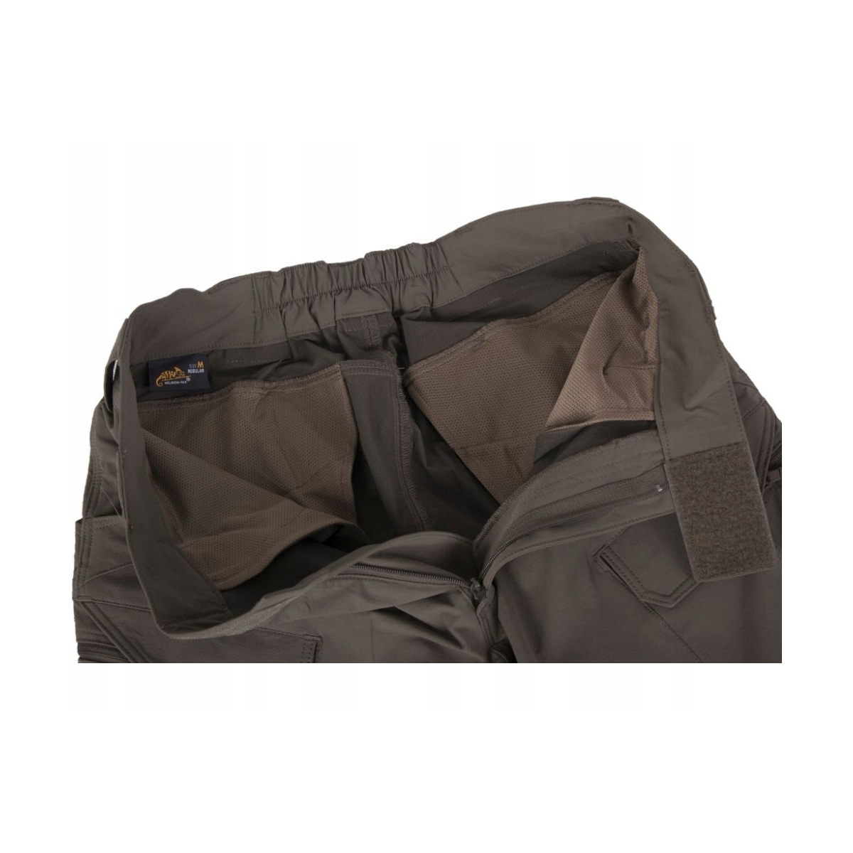 - Dwie siatkowe kieszenie udowe zapinane zamkiem YKK® (odwrotnym), mogące służyć do przenoszenia dokumentów i drobnych przedmiotów osobistych