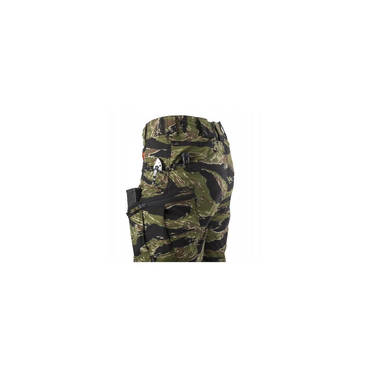 Zestaw kieszeni pozwala na ułożenie ekwipunku blisko środka ciężkości – wokół bioder i pasa użytkownika. Zastosowany, elastyczny materiał wpływa to na łatwość i szybkość poruszania się w warunkach taktycznych.