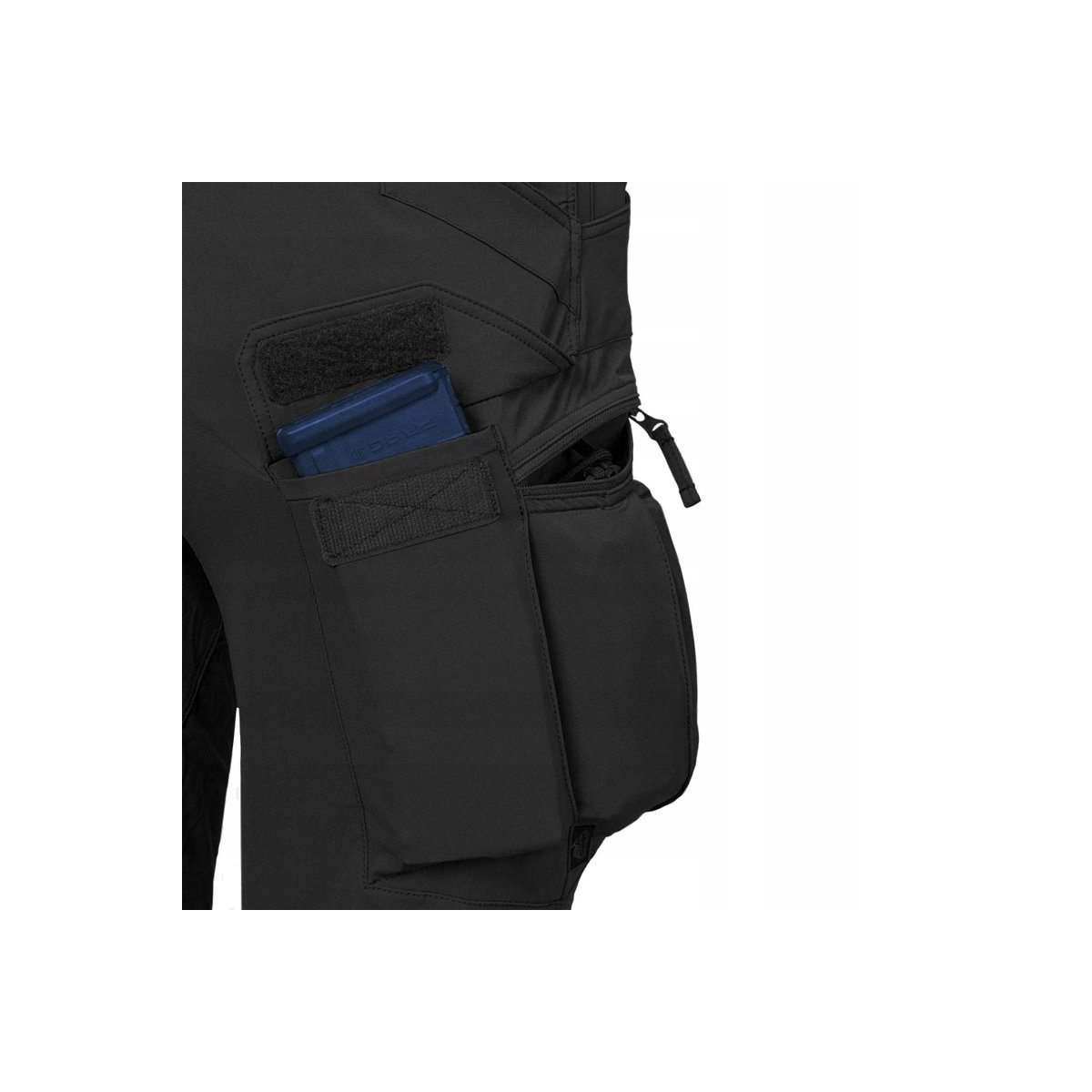 - Elastyczne taśmy w kieszeni cargo dla przenoszenia zapasowych magazynków, małej apteczki lub innych osobistych przedmiotów