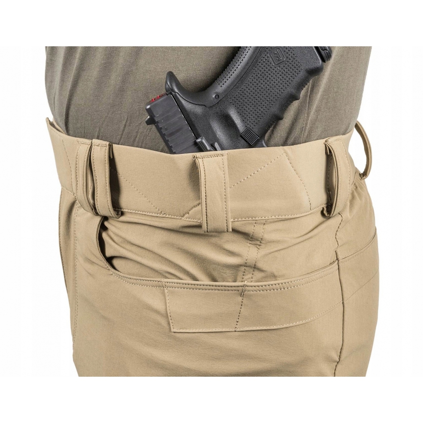 Spodnie CTP Helikon- elastyczne spodnie wykonane z materiału VersaStretch zapewniającego swobodę ruchu. Charakteryzują się funkcjonalnością bojówek przy zachowaniu nie rzucającego się w oczy, cywilnego wyglądu. Wewnętrzne kieszenie (dwie z przodu i dwie po bokach) pozwalają na dyskretne przenoszenie magazynków, broni lub innych przedmiotów użytkowych.