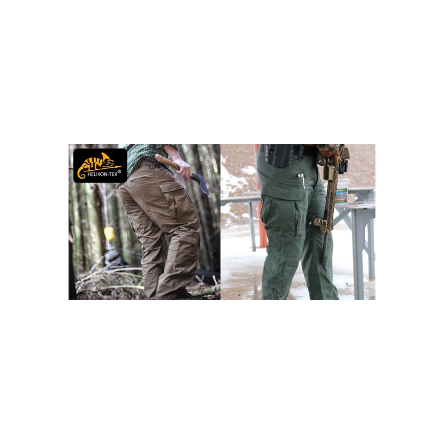 Spodnie wykonano z wysokiej jakości materiału PoliCotton RipStop (60% bawełna, 40% poliester), który charakteryzuje się dużą wytrzymałością oraz jest lżejszy i schnie szybciej.