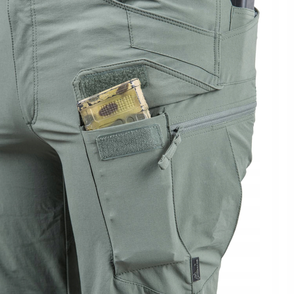 - Elastyczne taśmy w kieszeni cargo dla przenoszenia zapasowych magazynków, małej apteczki lub innych osobistych przedmiotów