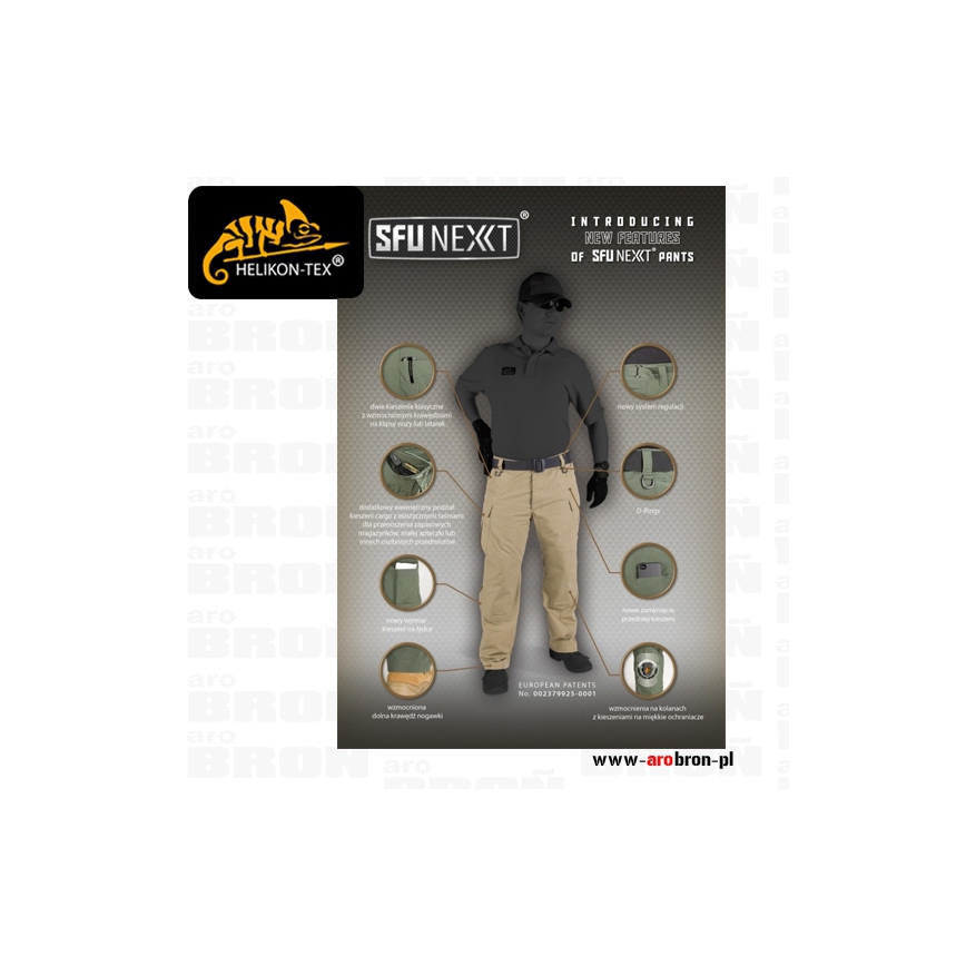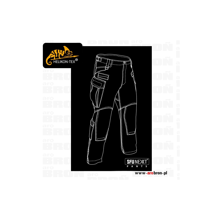 Spodnie SFU NEXT - spodnie z ulepszonej serii SFU (Special Forces Uniform) łączą w sobie wygodny, anatomiczny krój oraz klasyczny wygląd. Zawierają 9 kieszeni umożliwiających wygodne przenoszenie ekwipunku. Dodatkowo spodnie SFU NEXT posiadają wzmocnienia na pośladkach oraz na wysokości kolan. Znajdują się tu także kieszenie na miękkie ochraniacze.