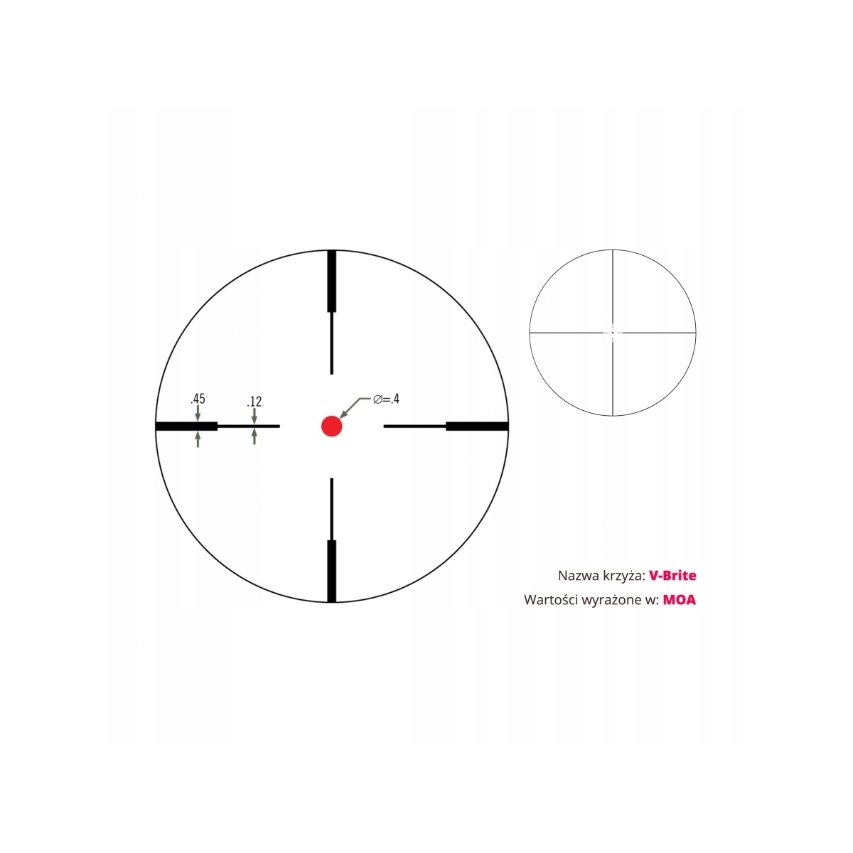 - Typ krzyża celowniczego (siatki): V-Brite® MOA
