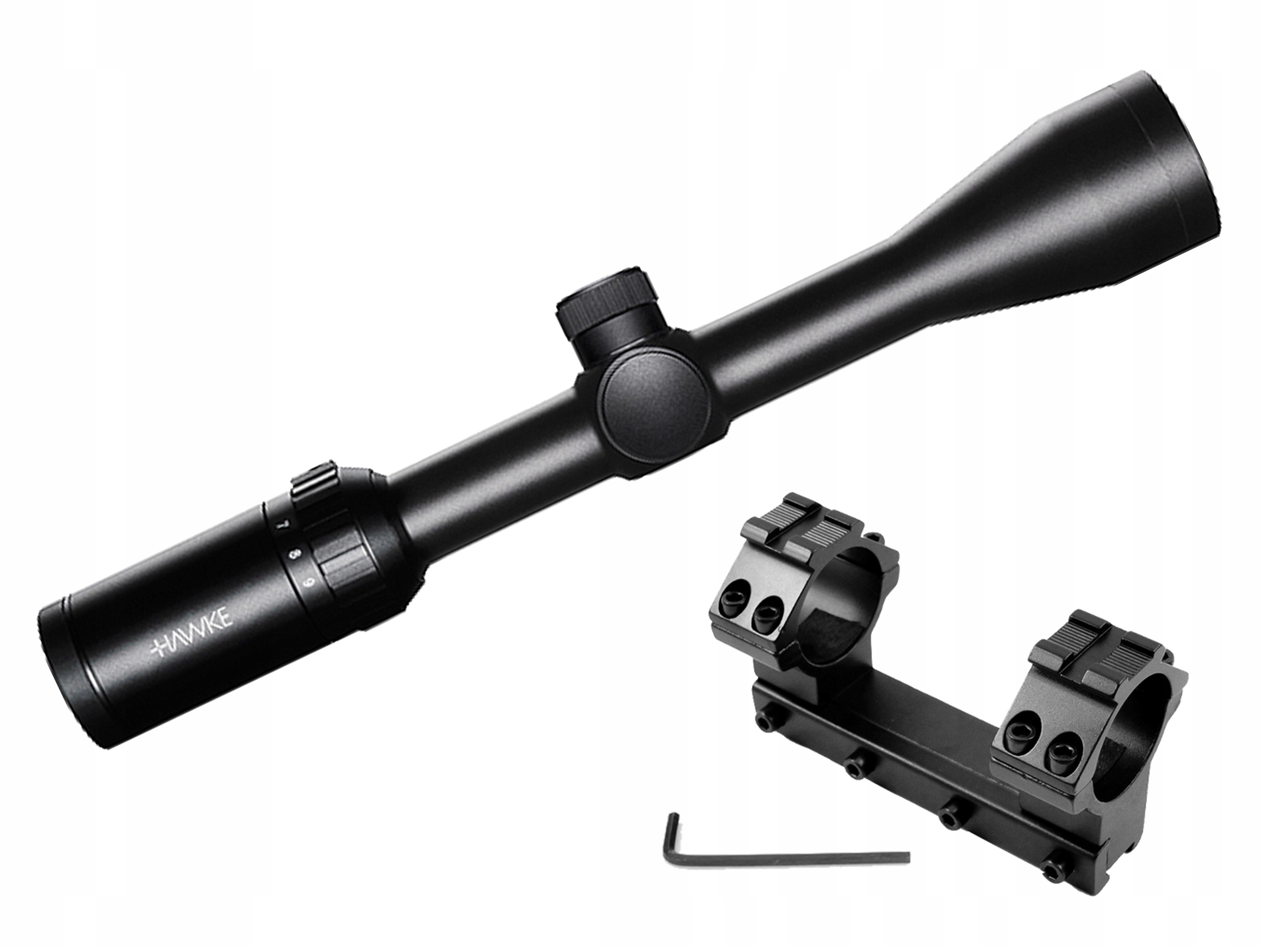 W komplecie: luneta + zakrywki okularów + szmatka do czyszczenia + montaż 1-częściowy wysoki Kandar na szynę 11mm.