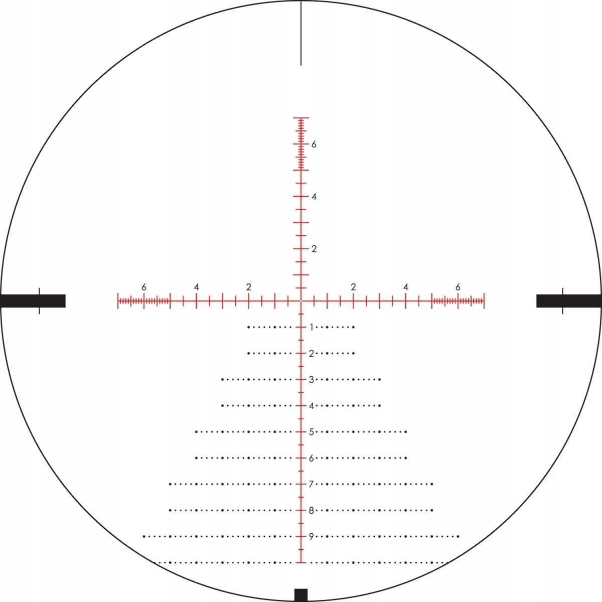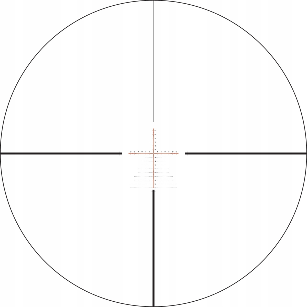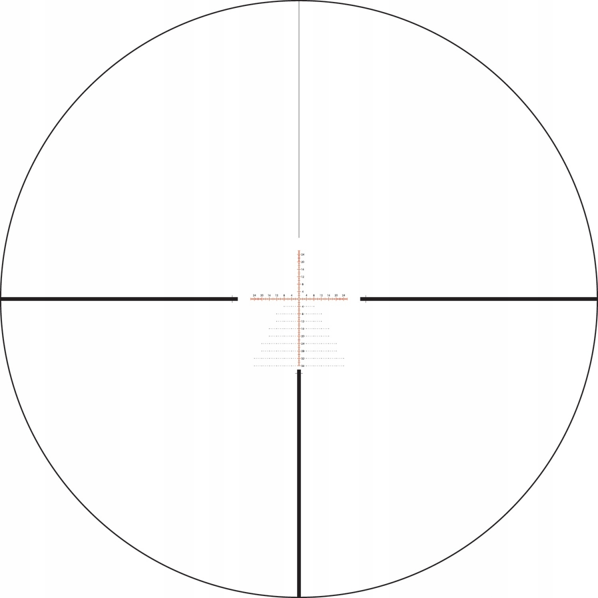 ⭐ W lunecie Vortex Viper PST II 5-25 × 50 FFP zastosowano krzyż celowniczy regulowany za pomocą wieżyczek z podziałką wyrażoną w MOA. Siatka celownicza w pierwszym planie ulega proporcjonalnemu powiększeniu wraz z powiększeniem obrazu, ułatwiając odczyt podziałki i nanoszenie poprawek.