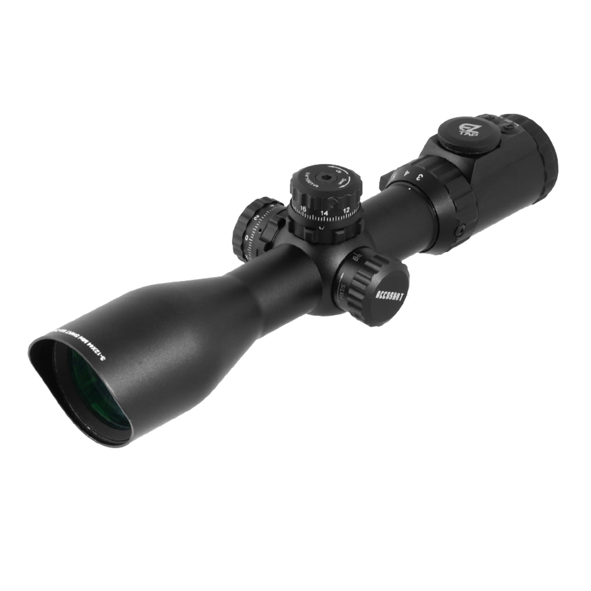 Luneta celownicza Leapers AccuShot 3-12X44 AO Compact przeznaczona do strzelectwa sportowego, wyposażona w zmienne powiększenie (zoom 3x-12x). Posiada regulację krzyża w pionie i w poziomie oraz dodatkowo regulację paralaksy. Luneta została wyposażona w podświetlany krzyż MilDot o 7-stopniowej skali regulacji natężenia światła z wyborem 36 wariantów kolorystycznych.