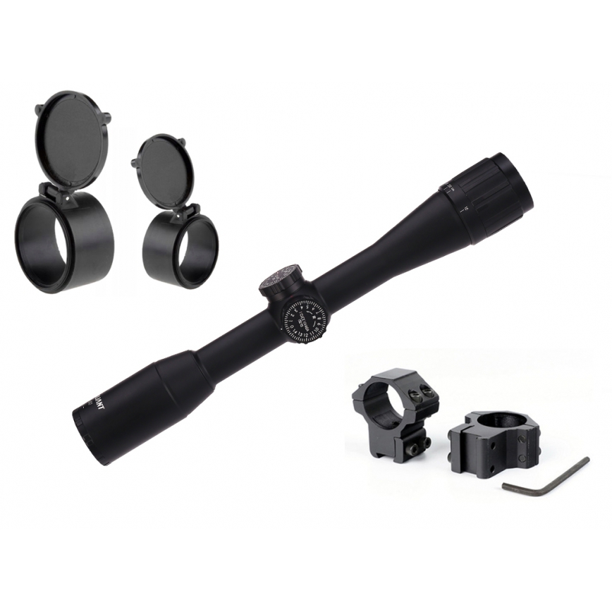W komplecie: luneta + zakrywki flip-open na okular i obiektyw + montaż 2częściowy średni na szynę 11mm + szmatka do czyszczenia.