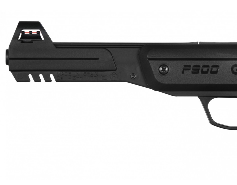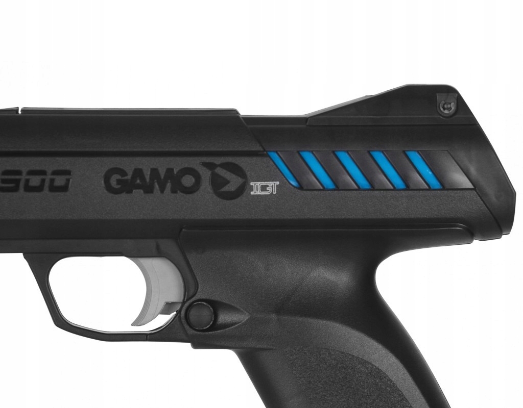 Wiatrówka GAMO P900 IGT 4,5mm - Klasycznie łamany pistolet sprężynowy z gwintowaną lufą kaliber 4,5 mm strzelający śrutem grzybkowym Diabolo. Wiatrówka w większości wykonana jest z tworzywa sztucznego odpornego na warunki atmosferyczne oraz zadrapania. Pistolet korzysta ze sprężyny gazowej IGT. Rozwiązanie to eliminuje zjawisko spadku mocy wiatrówki wraz z jej dłuższym używaniem, zmniejsza także generowane przy strzale drgania.