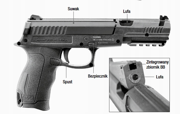 UWAGA! Pistolet DX17 najlepiej współpracuje z lekkim śrutem teflonowym typu Diabolo lub stalowym BBs. Nie zaleca się używać ciężkich śrutów ołowianych