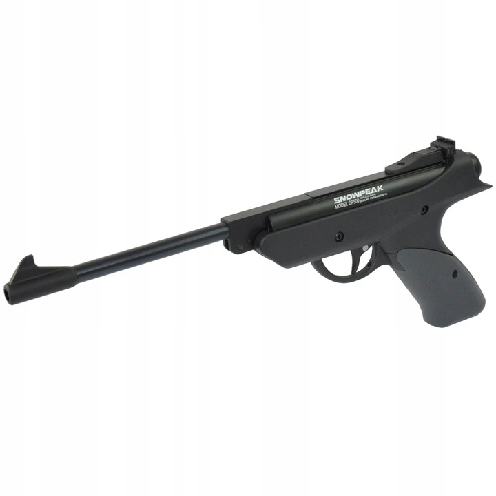 Wiatrówka SNOWPEAK SP500 4,5mm - to wiatrówkowy pistolet jednostrzałowy, napędzany klasyczną sprężyną. Ładowanie śrutu odbywa się bezpośrednio do lufy poprzez jej wcześniejsze złamanie w celu naciągnięcia sprężyny. Lufa w pistolecie jest gwintowana co nadaje pociskowi rotację i ostatecznie poprawia celność