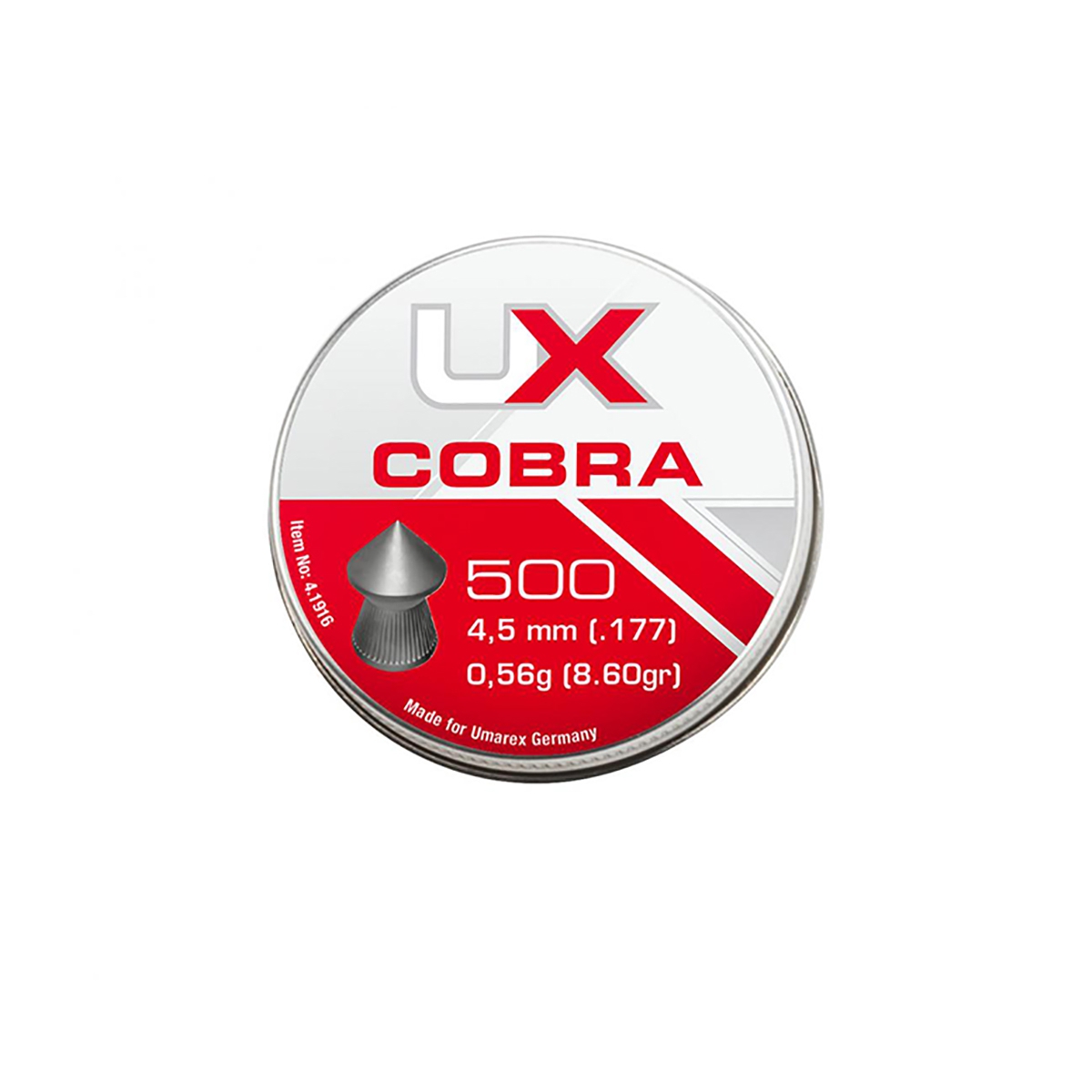 Śrut UMAREX COBRA 4,5 mm - ostro zakończony śrut przeznaczony do strzelania na średnie i dalekie dystanse do przebijalności. Śrut ze szpicem, moletowany.