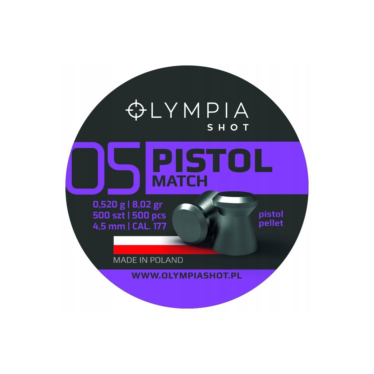 Śrut Olympia Shot Pistol Match - płaski śrut tarczowy wyprodukowany przez polską firmę AP Polska Kiecoń. Przeznaczony do strzelania precyzyjnego tarczowego z pistoletów pneumatycznych.