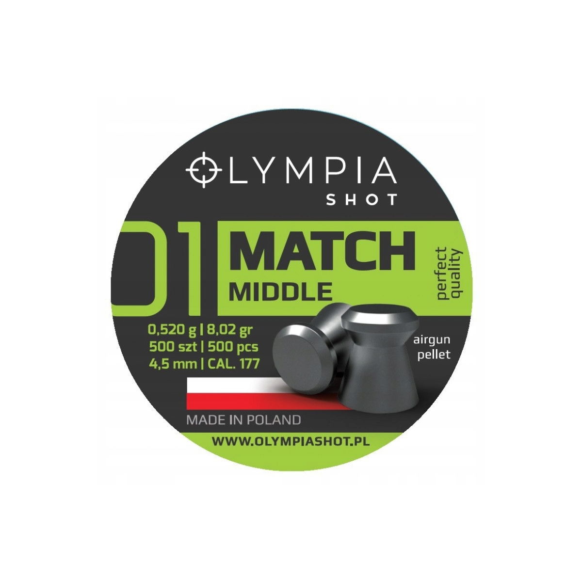 Śrut OLYMPIA SHOT MATCH MIDDLE 4,5mm 500szt płaski
