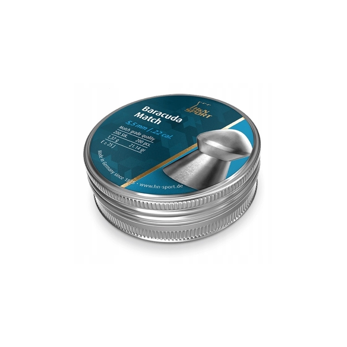 Śrut diabolo H&N Baracuda Match 5,52 mm 200 szt. - najwyższej jakości, matchowy śrut niemieckiego producenta H&N Sport. Produkowany głównie z myślą o zawodach Field Target Shooting na duże dystanse, gdzie precyzja jest niezmiernie ważna. Jest to w tej chwili jeden z najcelniejszych śrutów na świecie. Wykonany z ołowianego pręta wzbogacanego irydem, który zwiększa jego wytrzymałość i odporność na odkształcenia w czasie transportu. Zaokrąglona główka daje bardzo mały opór powietrza a przez to mały opad na danym dystansie. Dodatkowo został powleczony, przez co uzyskano dobry poślizg w lufie.