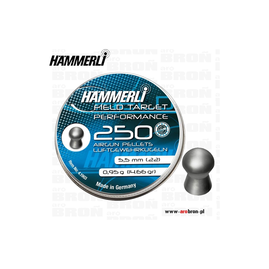 HAMMERLI Field Target Performance 5,5mm to ciężki półokrągły śrut posiadający dobre właściwości aerodynamiczne. Pozwala strzelać precyzyjnie na średnie i długie dystanse. Po uderzeniu w cel charakteryzuje się doskonałym grzybkowaniem.