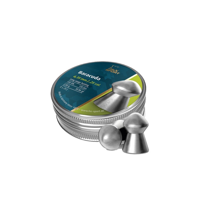 H&N Śrut Baracuda 6,35mm - to ciężki, zaokrąglony śrut do strzelania na dalekie dystanse.
