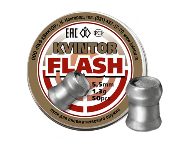 Śrut wybuchowy KVINTOR Flash 5,5mm - śrut, na który czekali wszyscy strzelcy posiadający wiatrówki w kalibrze 5,5.Jest to śrut rosyjskiego producenta służący do strzelań rekreacyjnych a największą zabawę dostarczy podczas strzelań po zmroku. Kvintor Flash 5,5 to śrut całkiem innej konstrukcji niż śruty wybuchowe 4,5mm tego producenta. Jest to śrut ołowiany z kołnierzem polimerowym oraz warstwą pirotechniczną dzięki czemu nie jest tak lekki jak śruty wybuchowe innej konstrukcji.