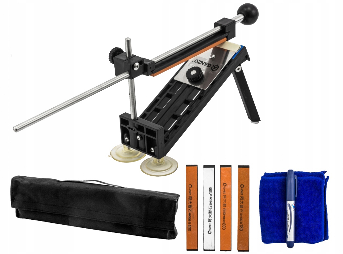 Ganzo Touch Pro - to zaawansowany system ostrzący, wykorzystujący aż 4 różne kamienie o gradacjach 120, 320, 600, 1500. Dzięki temu ostrzałka Touch pro naostrzy każdą krawędź tnącą, do perfekcji wygładzając jej powierzchnię. System prowadnic pozwala na ustawienie odpowiedniego kąta ostrzenia, a gumowe przyssawki podstawy zapobiegną przesunięciu się ostrzałki podczas pracy.