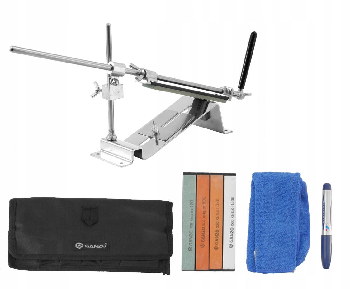 Ganzo Touch Pro Steel - ostrzałka w całości wykonany ze stali. To zaawansowany system ostrzący, wykorzystujący aż 4 różne kamienie o gradacjach 120, 320, 600, 1500. Dzięki temu ostrzałka Touch pro naostrzy każdą krawędź tnącą, do perfekcji wygładzając jej powierzchnię. System prowadnic pozwala na ustawienie odpowiedniego kąta ostrzenia, a całość montuje się za pomocą śrub do stołu, co zapobiega przesunięciu się ostrzałki podczas pracy.