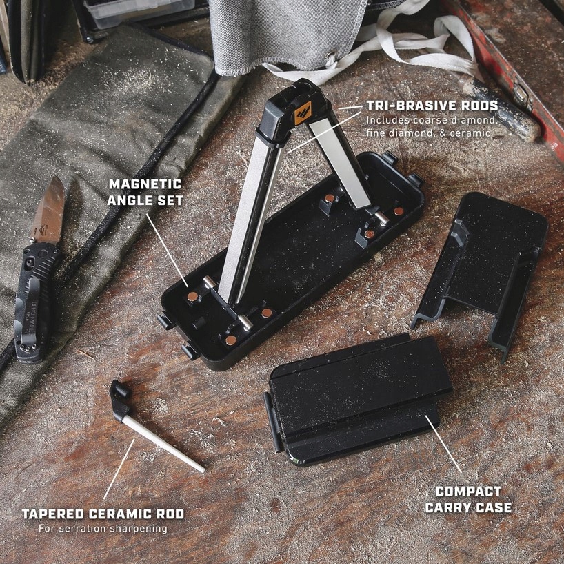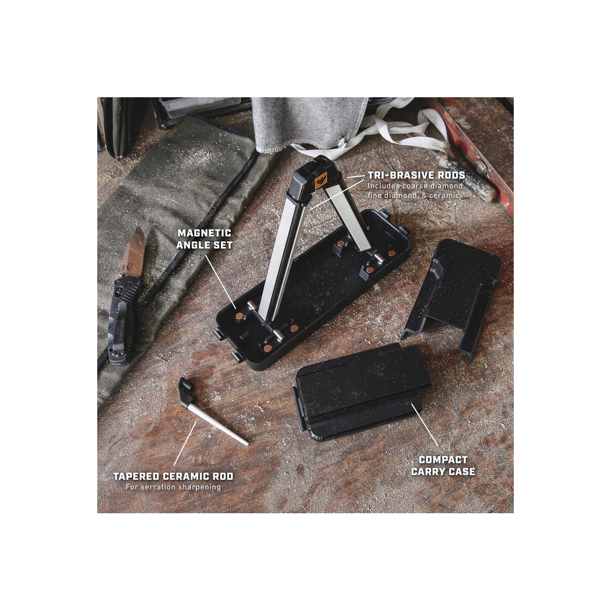 Ostrzałka Work Sharp ANGLE SET - to regulowany system ostrzący wyposażony w obrotowe pręty diamentowo-ceramiczne, pozwalający na ostrzenie noży pod 5 ustalonymi kątami. Ta wszechstronna ostrzałka ręczna, która dzięki zastosowaniu technologii Tri-brasive umożliwia błyskawiczną zmianę kąta ostrzenia oraz gradacji powierzchni ściernej.