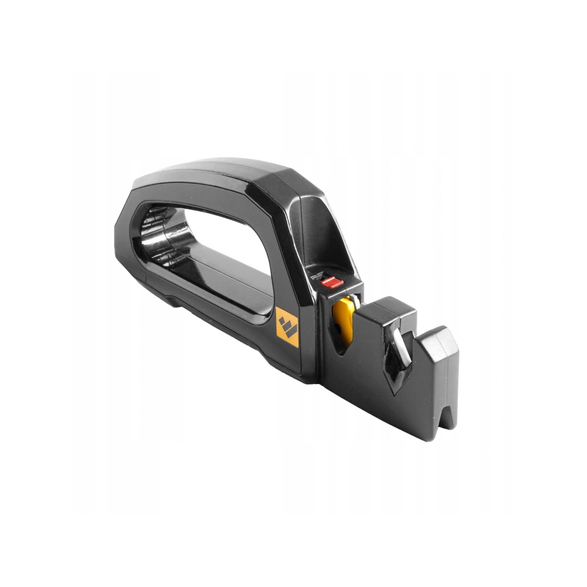 - Ostrzałką ma polimerowy szkielet, w którym wyróżnia się masywny chwyt zapewniający stabilność oraz wygodę podczas pracy w warsztacie lub w terenie.