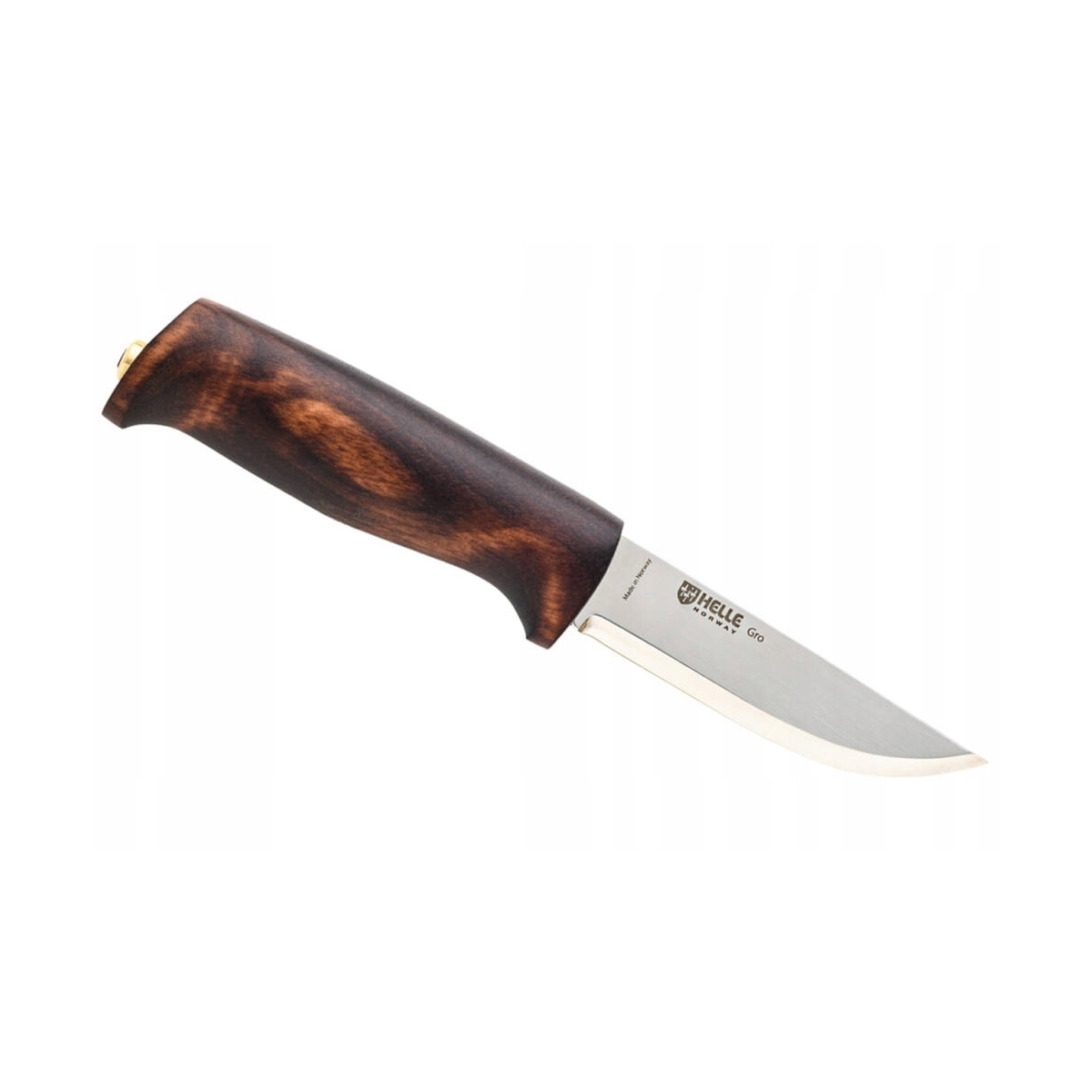 Nóż myśliwski HELLE GRO - wielozadaniowy nóż myśliwski norweskiej firmy Helle. Sprawdzi się również do użytku codziennego jak i na wyprawy w góry czy do lasu. Klinga została wykonana ze stali nierdzewnej Sandvik 12C27. Rękojeść wykonano z z mazerowanej brzozy.