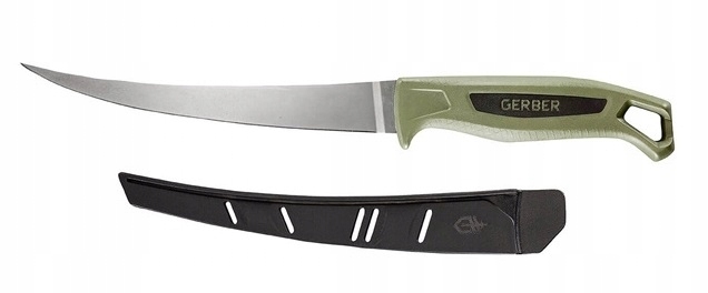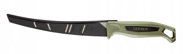 Nóż Gerber Ceviche 9"- to profesjonalny nóż do filetowania z ostrzem Stonewash z wykończeniem Salt RX. Posiada gładkie ostrze idealnie przystosowane filetowania ryb. Ergonomiczny uchwyt w polipropylenu z mikro teksturowaniem zapewnia pewny chwyt. Plastikowa osłona z otworami wentylacyjnymi chroni nóż przed zniszczeniem. Posiada otwór na smycz.