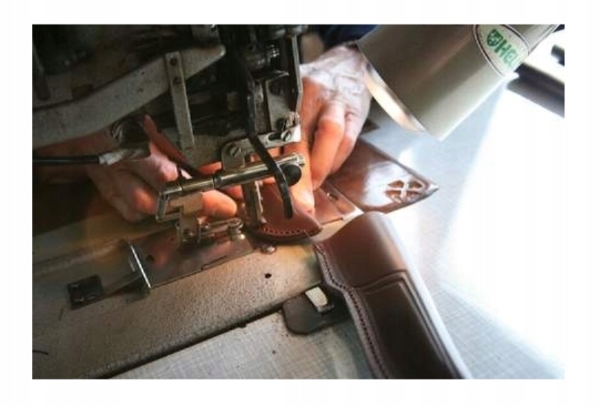 - Rękojeść wykonana z drewna brzozowego z wstawkami z czerwonej skóry