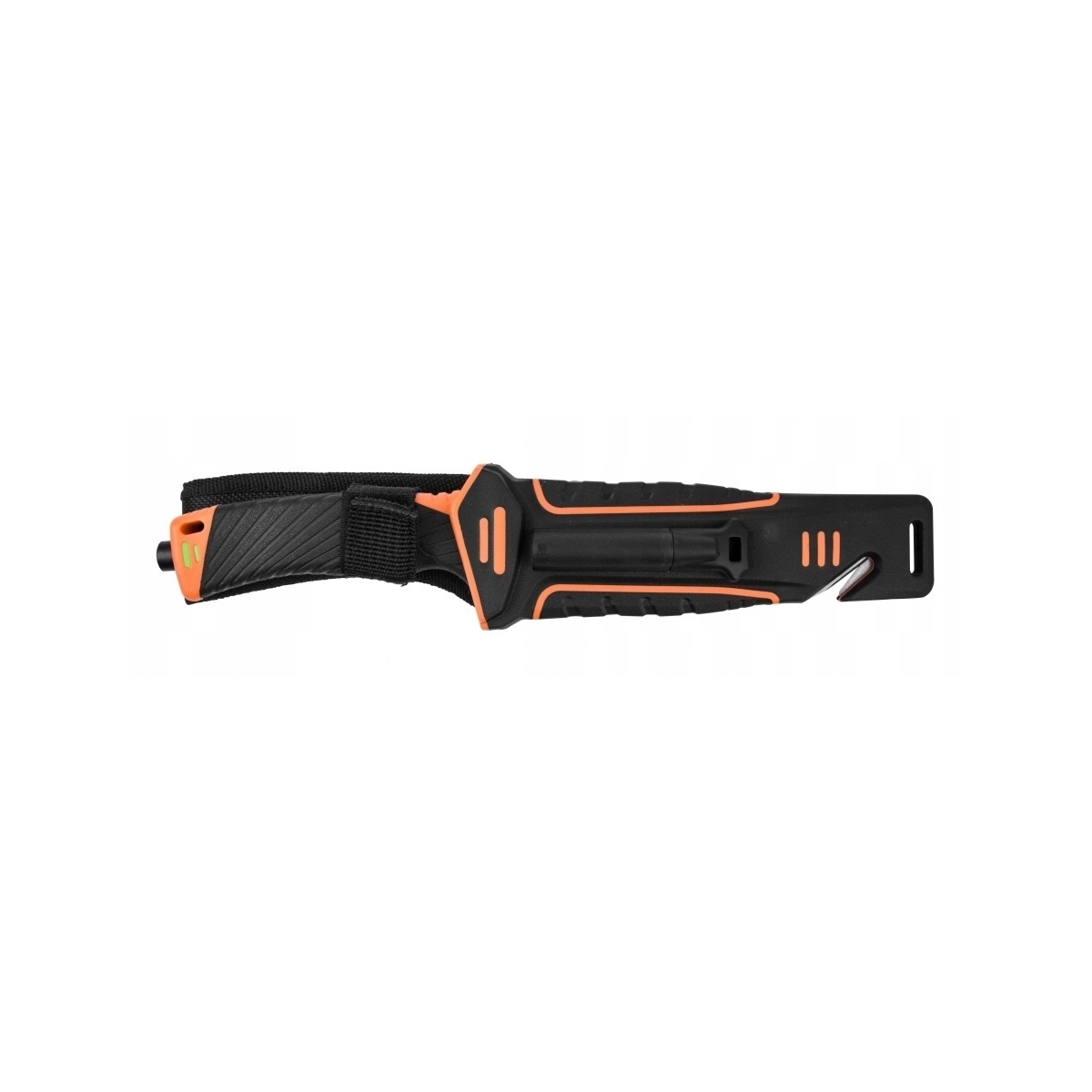 - W zestawie pochwa posiadająca: krzesiwo, przecinak do pasów, osełkę oraz otwór na linkę mocującą.