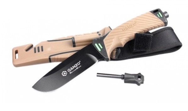 Nóż stały Ganzo G8012-OR – posiada stałą klingę typu full tang wykonaną ze stali nierdzewnej 440. Krawędź ostrza posiada profil dopasowany do możliwości użycia krzesiwa znajdującego się na pochwie. Tylna nakrętka pełni funkcję zbijaka do szyb, a po jej odkręceniu pojawia się możliwość wyjęcia ostrza z rękojeści. Pochwa wykonana z ABS i cordury posiada także przecinak do pasów, otwór na linkę mocującą oraz osełkę umożliwiającą szybkie naostrzenie noża.