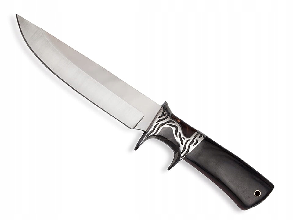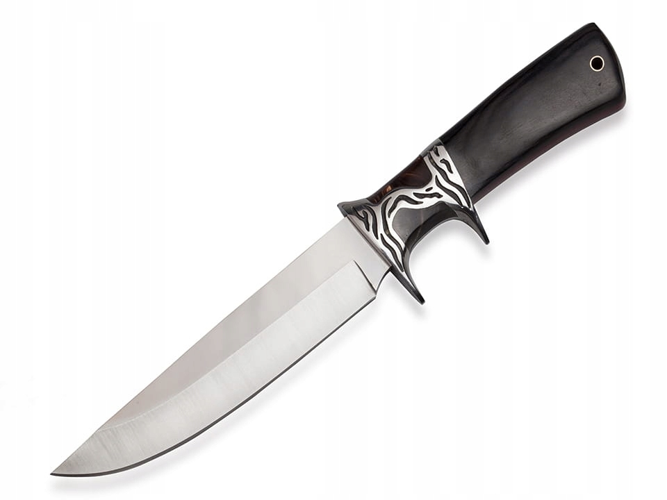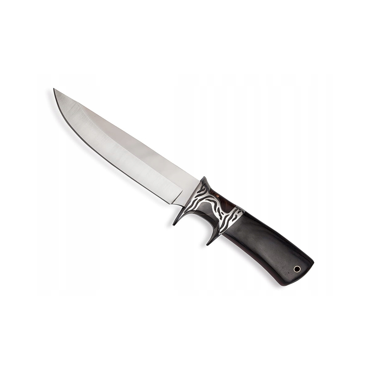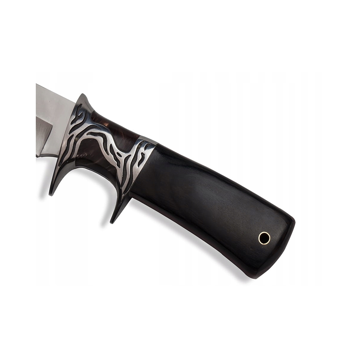 Nóż Stały Myśliwski N-218B + Pokrowiec - idealny dla myśliwych, łowców i wędkarzy. Głownia o profilu straight back została wykonana ze stali nierdzewnej typu 420 o wysokiej odporności na uszkodzenia oraz łatwej w ostrzeniu. Rękojeść została wykonana z drewnianych okładzin oraz stali. Posiada wykonane z metalu podcięcie palca, które wraz z szerokim jelcem zabezpiecza dłoń przed osunięciem się w stronę krawędzi tnącej. W tylnej części znajduje się otwór do przymocowania linki. Do zestawu dołączona została czarna kabura z cordury z możliwością dopięcia jej do paska spodni.